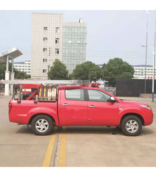 便捷式消防作戰單元由江鈴皮卡、警(jǐng)報係統、手抬泵、電動小推車、升降裝置、液壓總成、水帶整理架、軟水(shuǐ)管U型架、隨車配套的器材支架及整理箱等組成。